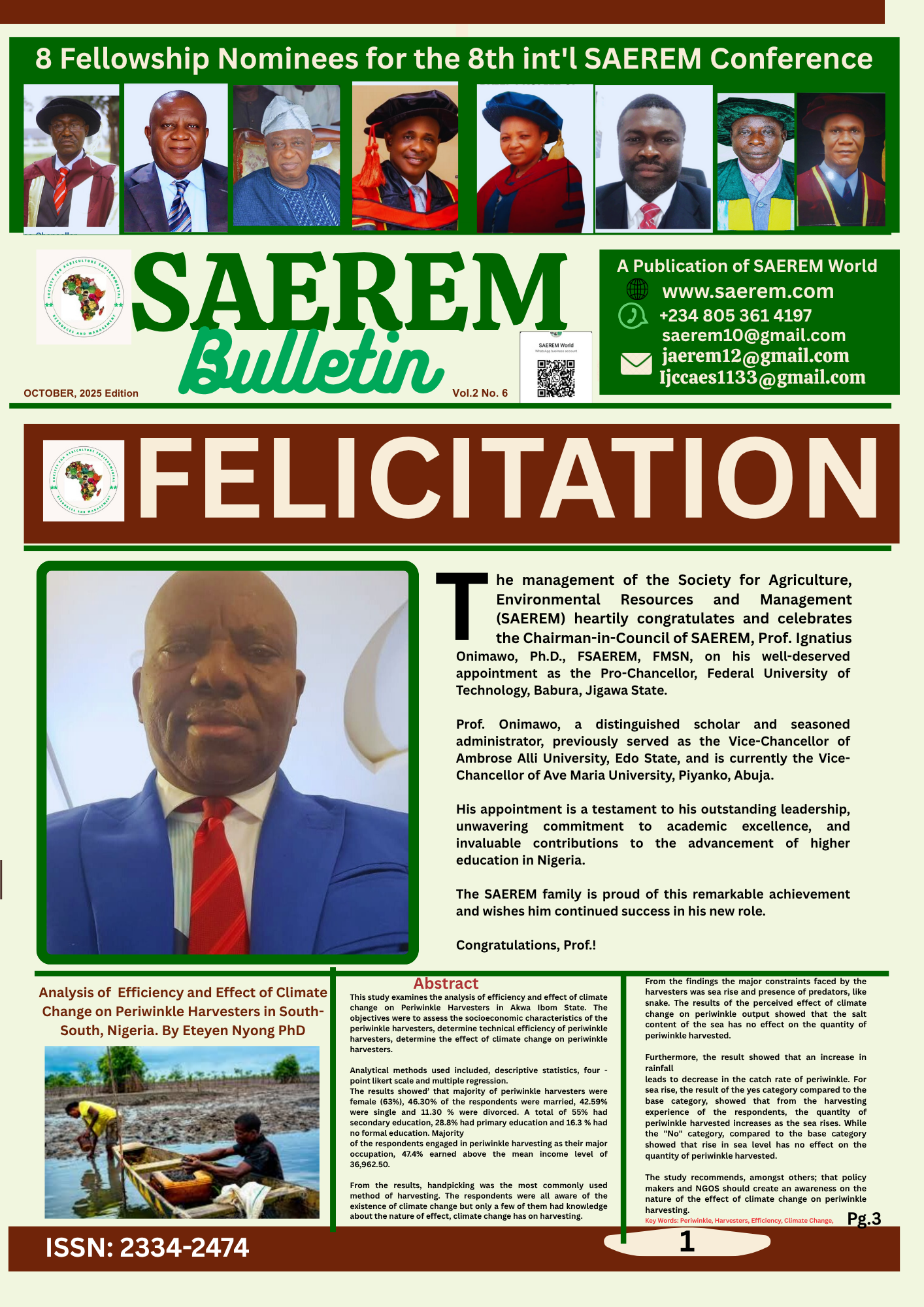 NextAssessing the Impact of Forest Ecosystem Service Categories on the Livelihood Sustainability of Forest Communities in Ondo and Kwara States, Nigeria Olalekan, B. E., Onyekwelu, J. C. and Oyerinde, O. V. Department of Forestry and Wood Technology. Federal University of Technology Akure Nigeria. Corresponding author: bankoleolalekans@gmail.com;